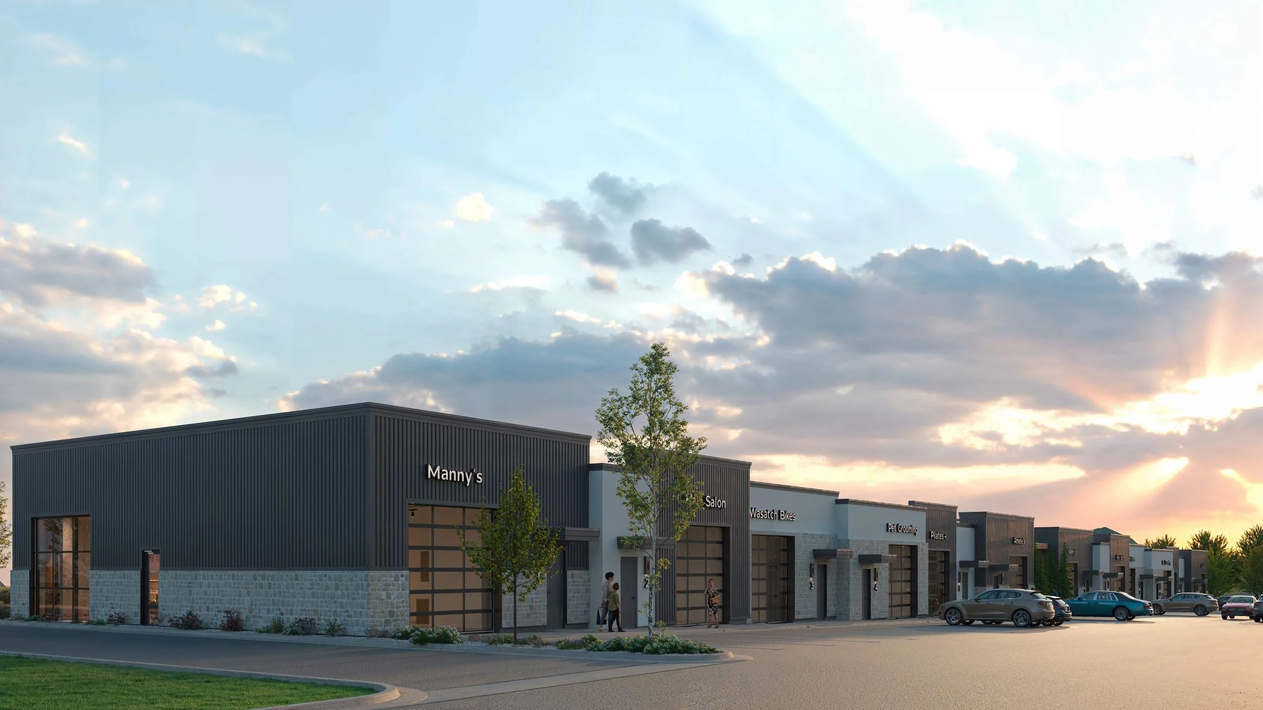 The development is suitable for retail shops, professional offices, production studios, creative/maker spaces, restaurants, breweries, wellness services, and light commercial uses (customizable based on actual zoning).